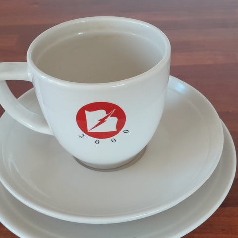 Kermansavi aamiaislautaset + kahvikupit
