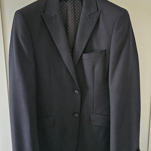 Dressmannilta hyväkuntoinen ja vähän käytetty puku. Takki 50 regular slim fit, ja housut 34-32.