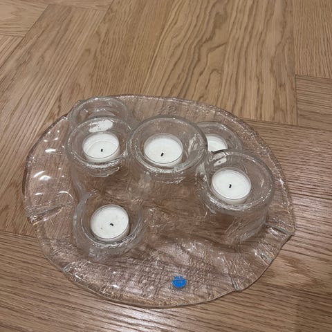 Myydään Merilasin kynttelikkö, 6 tuikkua tai pitkää ohutta kynttilää.