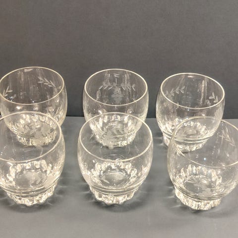 Riihimäen Lasin 1930 - 1950 lukujen arvostettu käsin hiottu juomalasi. Lasimassan väristä voi päätellä, että onko varhaista vai myöhempää tuotantoa. Nämä lasit varhempaa tuotantoa. Lasin korkeus noin 8 cm. Laseja löytyy lisää, jos haluatte. Laseja on valmistettu myös hieman pienemmässä koossa, jos kiinnostaa, lähetä viestiä.