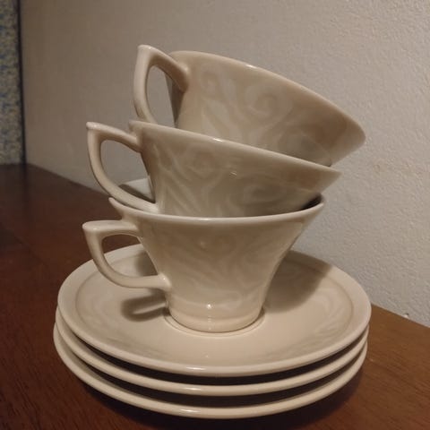VARATTU! Pentik Vanilja kahvikuppi ja lautaset ja teekupit.