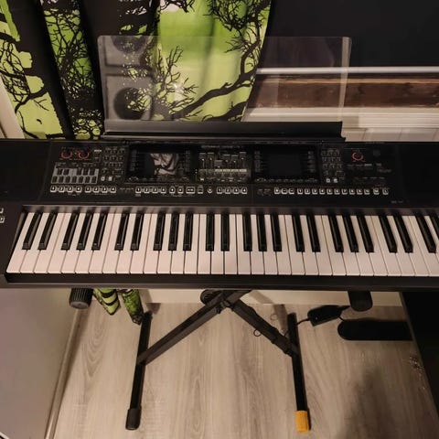 Roland FA-08 + M-Audio Oxygen Pro 61 + K&M Spider Pro + pedaalit