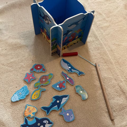 Kalastuspeli, onget ja patterit puuttuvat... on kyllä toiminut eli toimintakunnossa kun vain vaihtaa patterit.