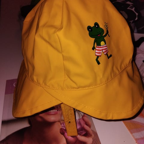 Sadehattu, Jonathan merkkinen. Kokomerkintä 52/54. Minusta noista sitä pienempää kokoa vastaa paremmin. Ollut vain lähinnä varalla päiväkodissa eli ei käytössä kuin kerran pari. Erikseen 6e