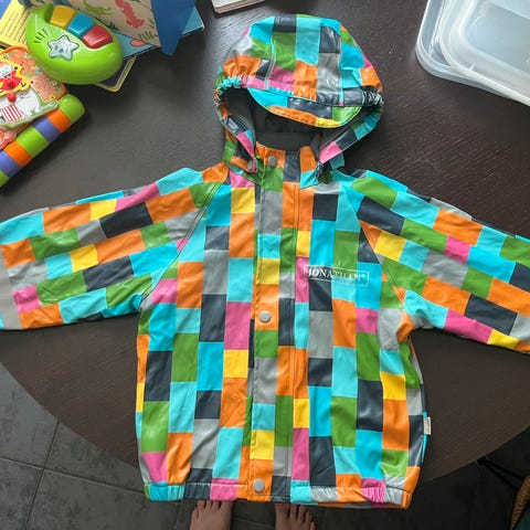 Kaksi paikkaa toisessa lahkeessa ja toisessa lahkeessa jotain punaista tahraa (ks.kuva), joka ei lähtenyt pesussa. Ehjät ja lämpimät pöksyt kuitenkin.