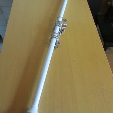Kaksi kpl eri pituisia kullanvärisiä verhotankoja. Lyhyempi 120-130 cm, pidempi 220 cm.