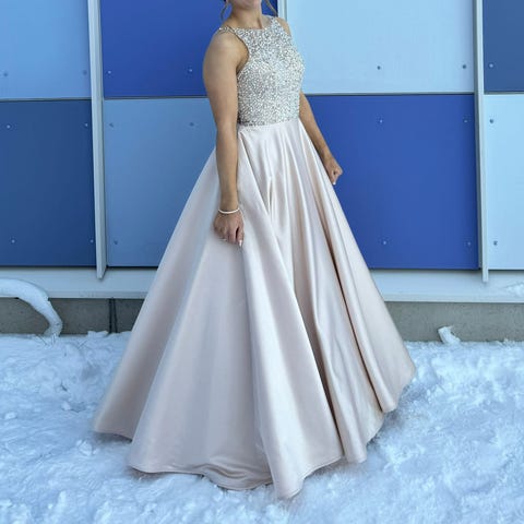 Myydään Dazzling -merkkinen vanhojentanssimekko hoikalle henkilölle. Koko on 34 (XS), mutta on ompelijalla kavennettu entisestään. Pystyy palauttamaan alkuperäiseen kokoon purkamalla saumoista. N. 160 cm pituisella käyttäjällä on ollut matalat juhlakengät, jossa ei ole ollut korkoa. Puku on pesty käytön jälkeen. Hintaan sis. vannehame sekä pukupussi. Saa sovittaa ennen ostopäätöstä. Halutessa saa ostaa lisäksi kuvassa olevat valkoiset pitkät käsineet, 10 euron hintaan. Puku sijaitsee Utajärvellä. Kulkeutuu Muhokselle tai Ouluun omien menojen mukaan.
