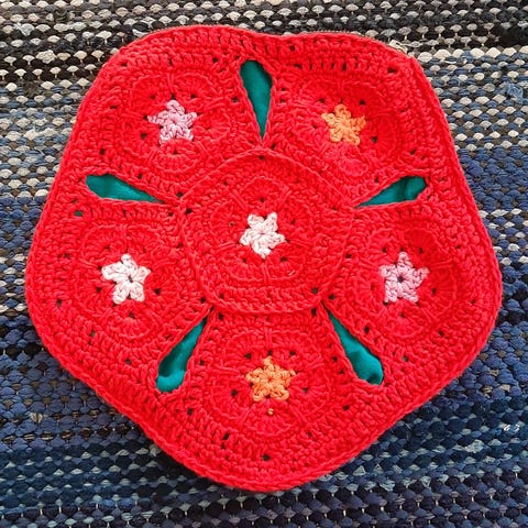 Villainen pussukka, noin 22x26cm.