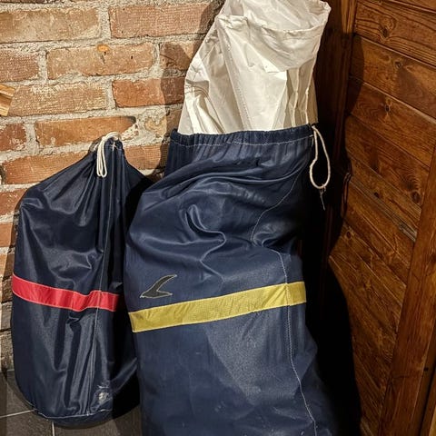 Myytävänä tarpeettomana etupurje, Marine Design ykkösgenoa n. 525 x 1040. Ollut Ohlson 29:ssä aikaisemman omistajan aikaan käytössä, ennenkuin oli vaihtanut rullapurjeisiin. Kunto hyvä, ei paikkausjälkiä. Mitat ei aivan tarkkoja, oli hankala mitata huonolla mitalla ja epätasaisella pohjalla.
