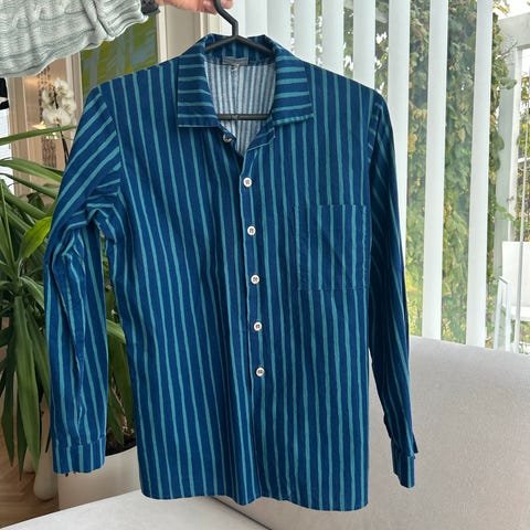 Marimekon Jokapoika 152-158cm puuvillapaita, sinivalkoraidallinen, erittäin hyväkuntoinen. Nouto Espoon Toppelundintie, käteisellä tai MobilePay