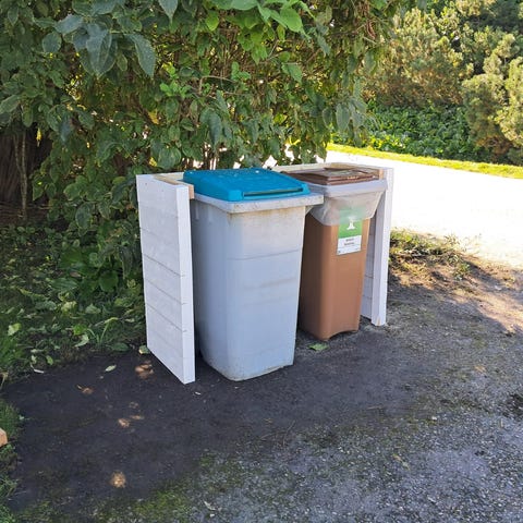 Kuvien mukainen roskavaunu / roska-astia renkailla.