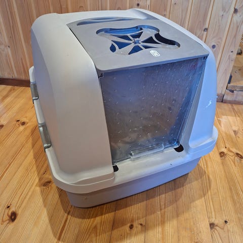 Kannen saa auki, vessaosan saa otettua pois puhdistusta ja tyhjennystä varten. Tämä on iso, mutta kissamme kasvoi vielä suuremmaksi. Katto-osassa on paikka suodattimelle, niitäkin tulee 2kpl uusia mukaan.