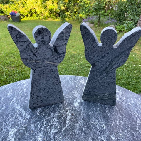 Valon Enkelit, Bianco Carrara C -marmoria. Kolme kokoa: Korkeudet 33, 44 ja 55 cm. Marmorin paksuus 35-30 mm.🪽 Valon Enkeli