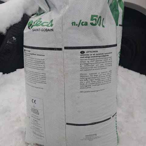 Myydään reilu säkillinen n.1200l lecasoraa. säkki vain avattu että saadaan toisen säkin jämät laitettua samaan säkkiin. Nouto Niipperi/Pohjois-Espoo.