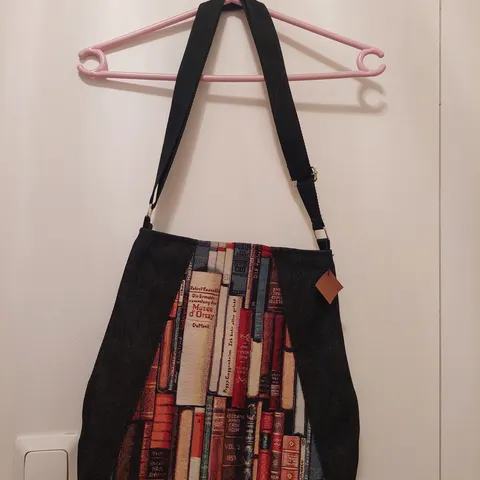 Kuvanmukainen tilava laukku olkahihnalla. avain kadonnut