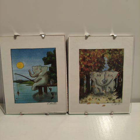 Myydään kaksi norsutaulua, joista tulee yksi kokonainen norsun kuva.