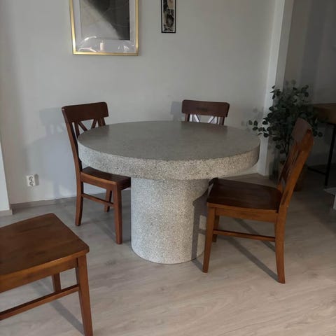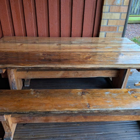 Puinen ruokapöytä ja tuolit luonnonvärinen materiaali