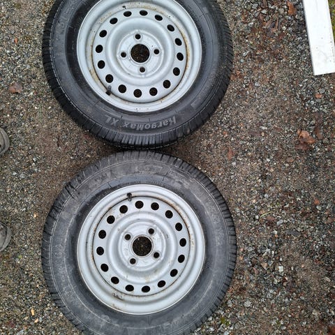 Peräkärryn vanteet ja renkaat 2kpl. Pölykupit puuttuu. Ei ole uudet mutta toimivat