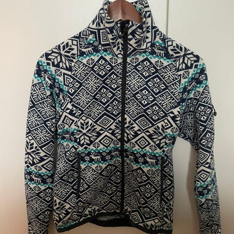 Ostettu kirpparilta muutama vuosi sitten, ollut käytössä paljon. Taskussa pari reikää, muuten hyvä!