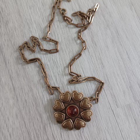 Virheettömässä kunnossa oleva pronssinen Kalevalan vingtage Mielikki riipus. Suunnittelija Germund Paaer. Keskellä oleva "kivi" meripihkaa. Alkuperäisessä rasiassa.