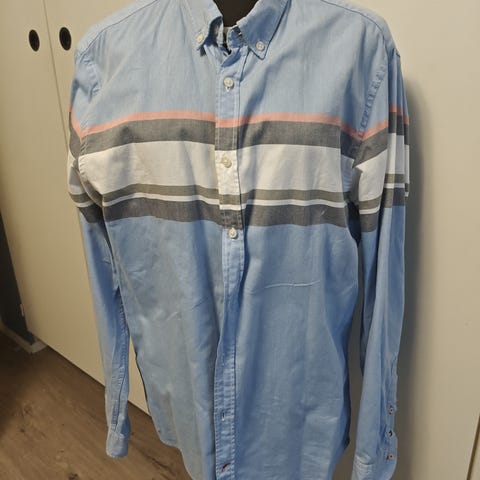 Tommy Hilfiger Washed Slim Fit miesten paita, koko L. Sininen väri ja kuvioitu kangas. Slim fit -leikkaus tarjoaa istuvuuden. Kerran käytett puvun kauluspaitana. Koko vastaa mielestäni enemmän L-XL. Stockalta ostettu.