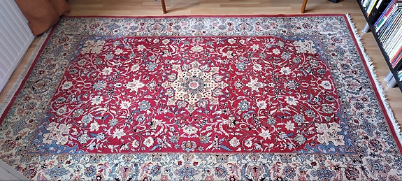 Hyväkuntoinen ja hieno Sarough-tyylinen aito villamatto.