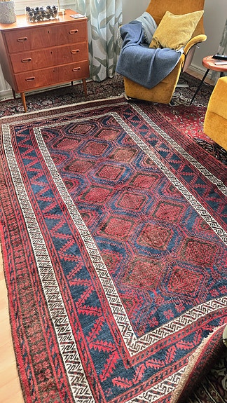#22 Käsinsolmittu itämainen retro vintage villamatto olohuoneen matto persialainen