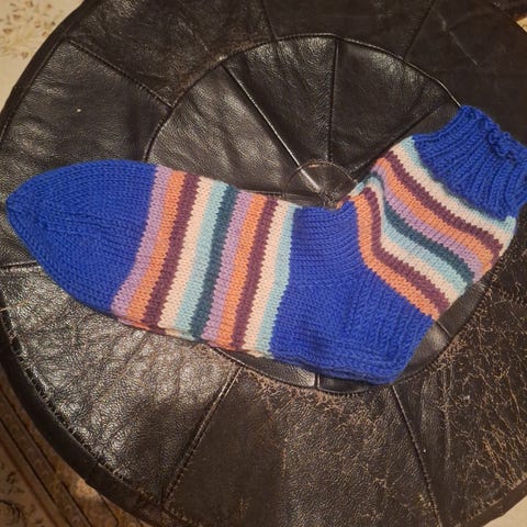 Kuvan uudet käsin neulotut villasukat koossa 46/47. Lankana Kotikulta sukkalanka (75% villaa ja 25% polyamidi).