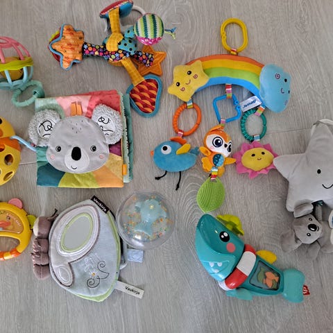 Kuvien mukainen vauvan lelujen setti. Hyvä käytetty kunto.