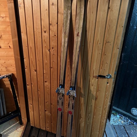 Täysin ehjät mutta puussa näkyy ajan patinaa. Bambusauvat (pituus 125cm). JF-Suksi Pat. H. 538/69 (selvitin sem verran että tehty v.1969). Sukset itse mainostavat että näillä (tai firman suksilla, Esko Järvinen Oy) on voitettu 95 olympiamitallia. Valmistettu Suomessa. Voin postittaa, mutta toridiili ei tarjoa näin isoa pakettia niin postituksesta voidaan viestitellä erikseen.