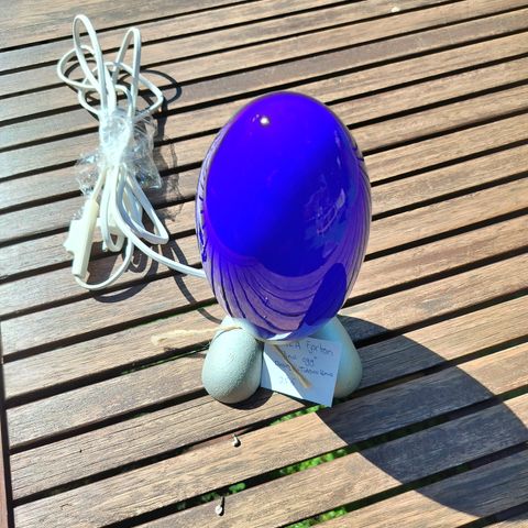 Sininen Ikea Fjorton Dino Egg, Tatsuo Konnon suunnittelema pöytälamppu. Vintagea 90-luvulta.