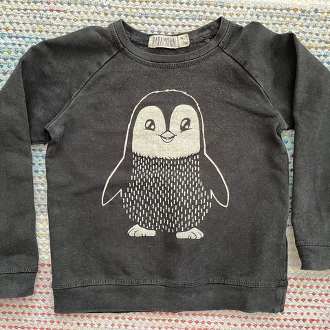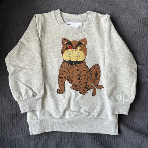 Myydään siistikuntoinen harmaa Mini Rodinin collegepaita mustapantterin kuvalla.