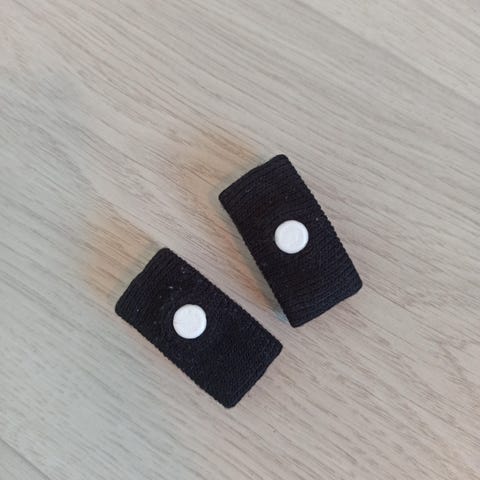 Sea-band - pahoinvointiranneke. Mm. raskauden pahoinvointia estämään käytettävät rannekkeet. Käytetty yhden alkuraskauden ajan. Pientä nukkaa. Tietoja kuvissa.