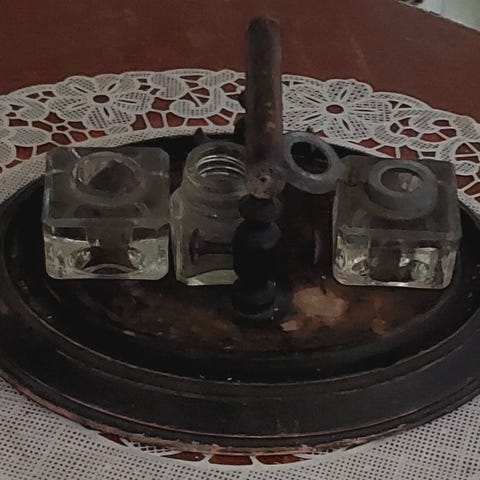 Jotain säikeitä lasissa olisko virheitä kun niin vanha esine