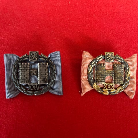 hopeinen sairaanhoitajan rintaneula, jonka on valmistanut ruotsalainen Sporr-yritys.