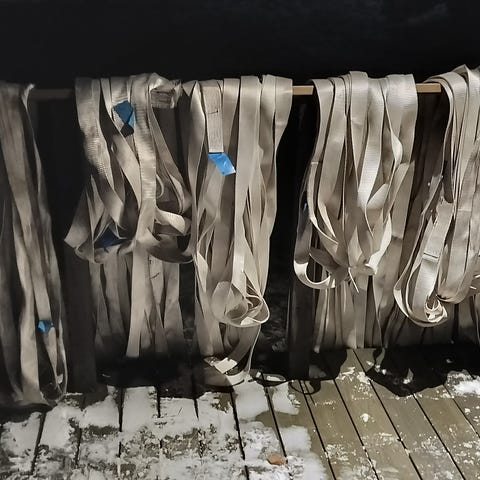 Pohjavanerit mädääntynyt ja poistettu kun ei ole käyttöä korille. Tähän näppärämpi tekee vaikka verkot tai vanerit ja järjestää vaikka tanssit yläilmoissa. Suosittelen pariksi isoa trukkia, meillä trukki liian pieni tämän turvalliseen käyttöön.