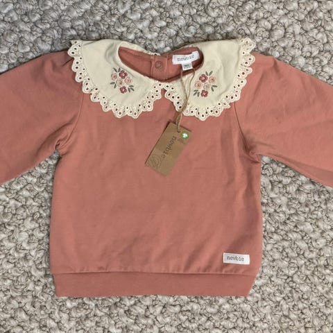 Punainen Newbien puuvillaneule. Koko 80, mutta mennyt meillä pidempään. Siisti, ei juurikaan pesunukkaa.