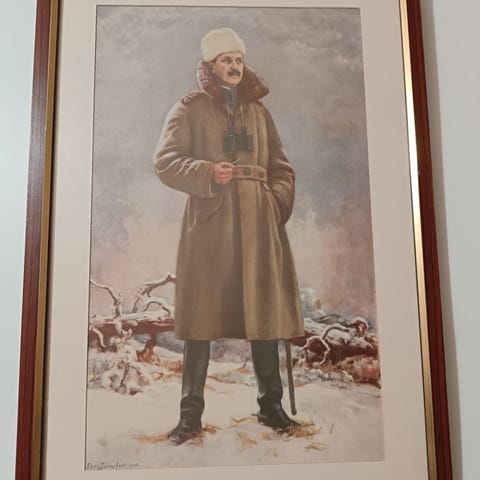 Eero Järnefelt "Carl Gustaf Mannerheim" Tilgmann painokuva, Eero Järnefelt 1933 maalauksesta tehty painokuva, mittoja kehysten päältä korkeus n.48cm leveys n.33cm kuva-ala n.38,5x23,5cm