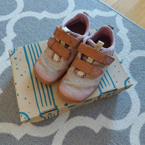 Myydään ruskea-keltaiset, hyväkuntoiset Affenzahn Knit Happy Lion-paljasjalkalenkkarit koossa 29, ja valmistajan ilmoittama jalan suositusmitta 17,9 cm. Kalvottomat kengät kuivahkoille keleille etupäässä kesään tai loppukevääseen ja alkusyksyyn. Kunto hyvä, käytetty aina suojasuihkeen kanssa ja edelleen tosi siistit. Ei erottuvia tahroja, kulumaa pohjissa, tikkauksissa, liimauksissa tai muuallakaan, tarrat pitävät ja siistit. Ei eläimiä, tupakointia tai hometta talossa. Nouto Keravan Sompiosta tai postitus. Hp. 15 € ja mahdolliset pk:t päälle.