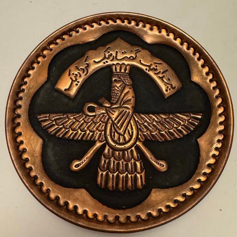 Koristeellinen lautanen Kreikasta. Numeroitu. Materiaali: kupari. Halkaisija 31,8 cm.