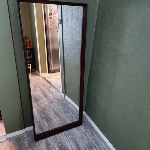Aito 70-luvun muovikehyksinen seinään kiinnitettävä peili.
