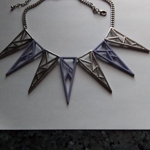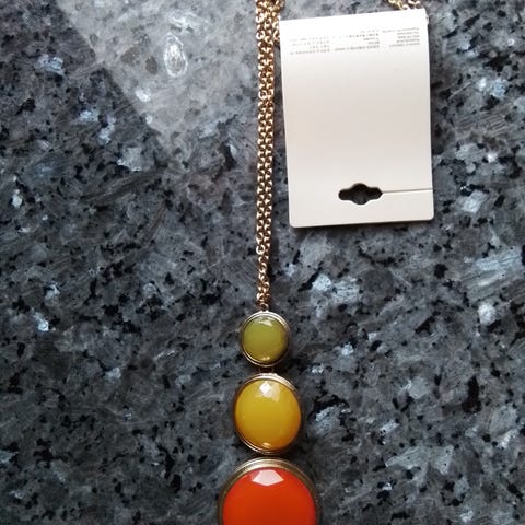 Upea kaulakoru monivärisillä ja monen muotoisilla koristeilla metallinmustassa ketjussa, kokonaispituus 51cm, voi säätää.