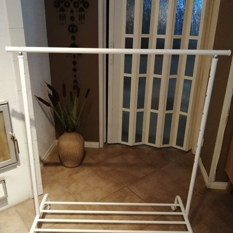 Kuvan mukainen metallinen vaaterekki, josta yläosa on vaihdettu muoviseen osaan.