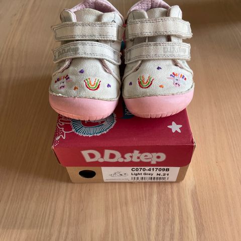 Vaaleansiniset D.D.Stepin nahkaiset välikausikengät kokoa 21. Kunto hyvä, paitsi pientä osumaa näkyy pinnassa vaalean värin vuoksi. Erittäin käyttökelpoiset edelleen, sillä pohjat ja pohjalliset täysin hyvässä kunnossa eikä kengät ole lösähtäneet. Sisämitta pituus noin 13 cm ja leveys 4,5 cm. Taloudessa ei lemmikkejä tai tupakointia. Nouto Herttoniemestä tai ToriDiili.