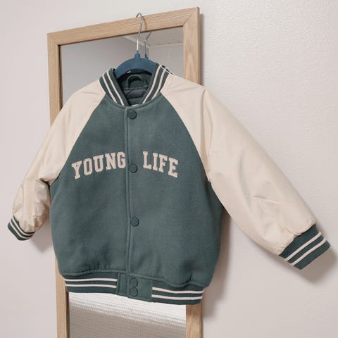 Ohuella trikoovuorella oleva kevät/syystakki, koko 92. Tahraa, ei ole koitettu poistaa.