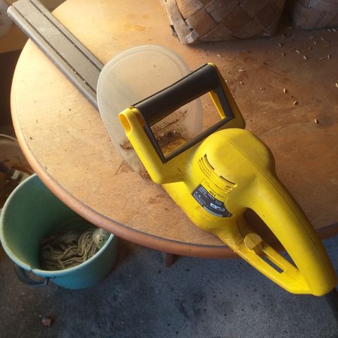 Vähällä käytöllä ollut Hyundai-pensasleikkuri. Hyvässä kunnossa.