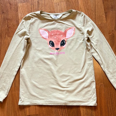 Käyttämätön söpö vaaleanpunainen bambineule. Glitteriä painatuksessa. H&M. Koko 134/140. Ei lemmikkejä taloudessa.