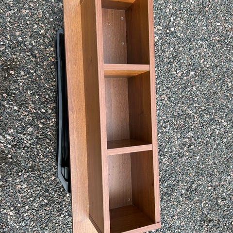 Tästä tuunausprojektiksi tai vaikka ulkokäyttöön vanha suihkuhylly, kulmamalli. Maali paikoin irtoillut ja vähän ruostetta