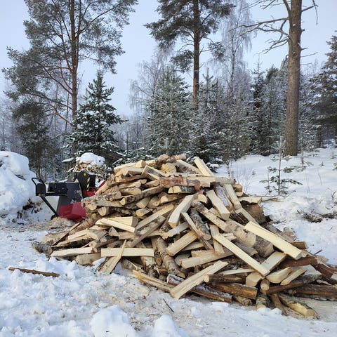 Koivua ja sekapuuta pinossa. Myös toimitettuna kippikärryllä 3 - 6 m3.