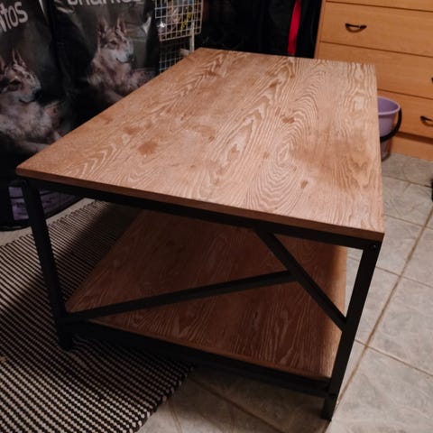 Tukeva kokopuinen sohvapöytä, väri alunperin koivu mutta väri tummunut jonkun verran. Kannessa jonkun verran käytönjälkeä havaittavissa mutta ei mitään syviä naarmuja, helppo hioa ja käsitellä siistiin kuntoon.